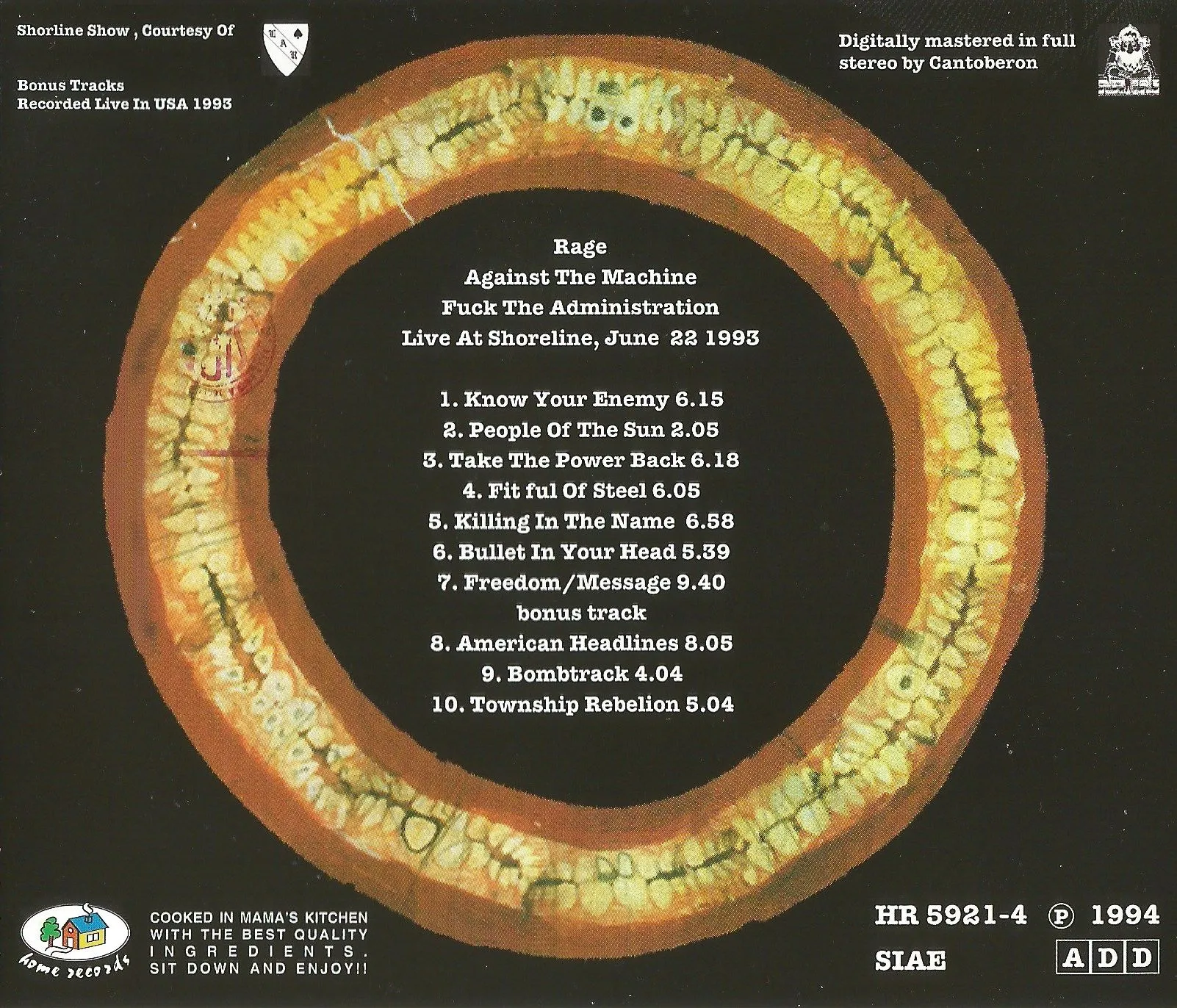 Know Your Enemy People of the Sun Take the Power Back Fistful of Steel Killing in the Name Bullet in the Head Freedom / Message
